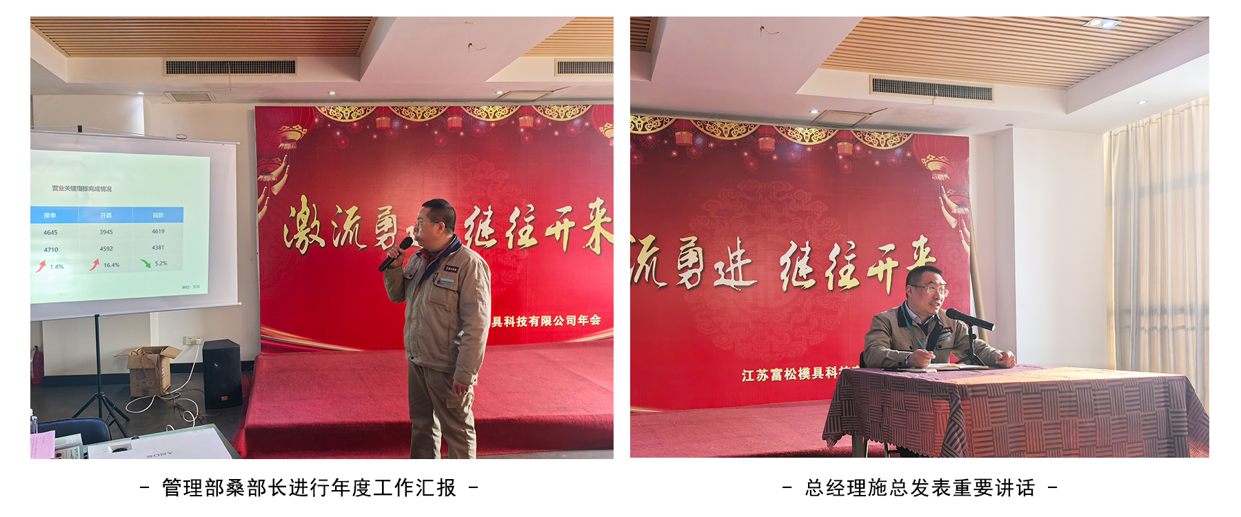 2025年1月20日,富松模具年会正式拉开帷幕,全体员工欢聚一堂,大会伊始,管理部桑部长对2024年的成绩进行了汇报总结,对2024年度优秀员工进行了表彰,总经理也就过去一年的总结发表了讲话。