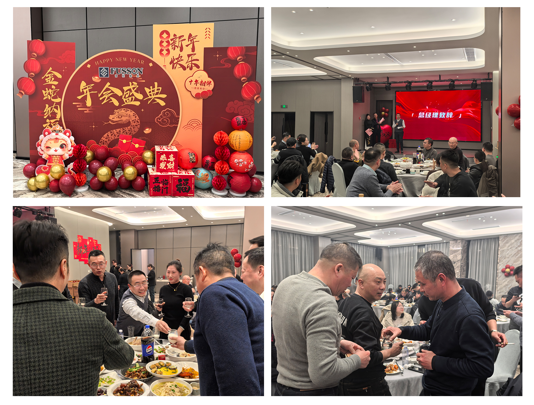 2025年1月21日,富松模具举办了年终答谢晚会,以感谢员工一年的辛苦付出;同时2024年也是富松模具新工厂落成十周年,十次春秋的更替,十载辛勤的努力,三千六百多次的日升日落,造就了今天的成绩;十年企业人的奋斗,十载领导者的耕耘,一百二十个月的斗转星移,奠定了今天的规模。为了表达诚挚的感谢,本次晚会也邀请了通达总部的领导与同仁,以及部分合作商到场,共同举杯欢庆,见证富松模具十年的成长与成绩。