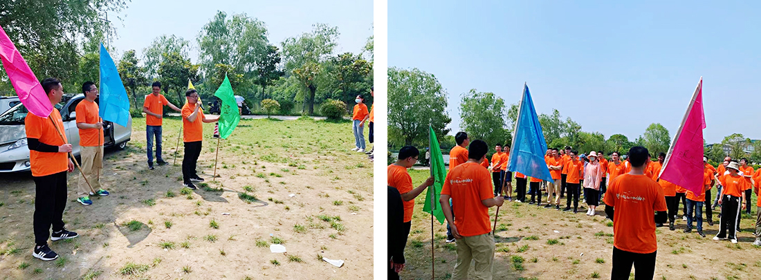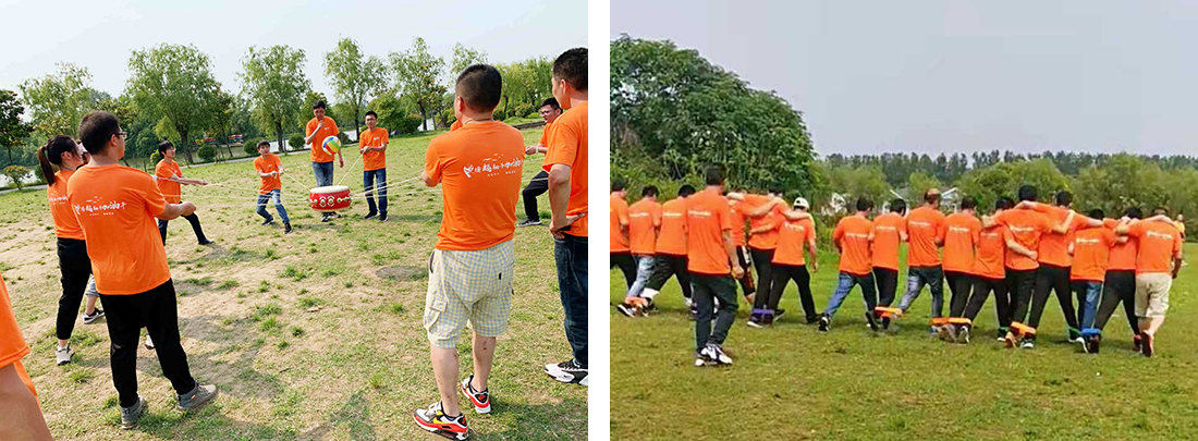 公司为了让员工享受到更好的体验,特地邀请了专业团队进行策划,员工们在到达目的地之后,先前往了活动的草坪,首先开始的破冰环节在热身的同时也拉近了彼此之间距离,一时间场地上都是相互捶背,相互拥抱的情景,气氛空前的热烈起来,之后教练将员工们分成四队为了下午的PK赛做好准备。